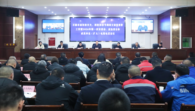 2月10日,万源市森林防灭火、消防和春节期间文旅促消费工作暨2026年第一次安委会、应急委全体成员单位(扩大)电视电话会议召开,深入贯彻落实习近平总书记关于安全生产、消防和森林草原防灭火工作的重要论述和指示批示精神,认真落实中、省、达州市有关部署要求,全面分析当前形势、研究部署下步工作,进一步引导全市上下绷紧“安全弦”、拧紧“安全阀”、守好“安全关”,全力确保安全生产形势持续稳定向好。市委副书记、市长、市安委会主任朱挺出席并讲话。