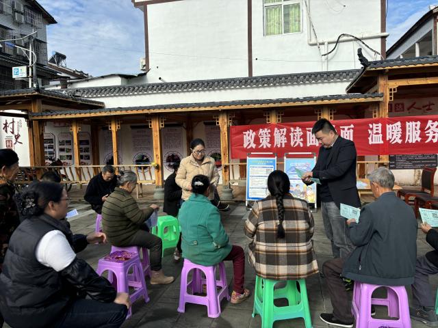 2024年11月21日,万源市居保局在八台镇天池坝村开展“政策面对面,服务零距离—2024年社保服务进万家”活动。