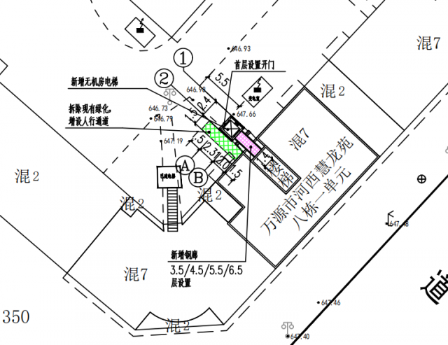 附件:万源市慧龙苑小区八栋一单元加装电梯设计方案总平面图