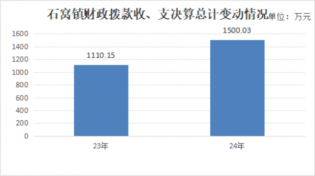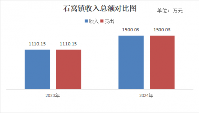 2024年度财政拨款收入、支出总计均为1500.03万元。与2023年度相比,财政拨款收入总计、支出总计各增加389.88万元,增长35%。主要变动原因是24年政府性基金及对应专项债务收入安排的支出增加412.41万元。