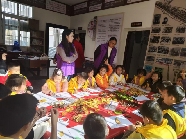 现场,孩们与“爱心妈妈”组队,手持工具沿镇域河道弯腰捡拾塑料瓶、包装袋等垃圾,细致清理草丛中隐藏的废弃物;随后走进林间,“爱心妈妈”凭着生活经验,教孩子们辨识青松、蕨类等本土植物,讲解其生态作用。大家还就地取材,用玉米叶、松针创作蚱蜢、风景画等生态手作,感受自然材料的妙用。