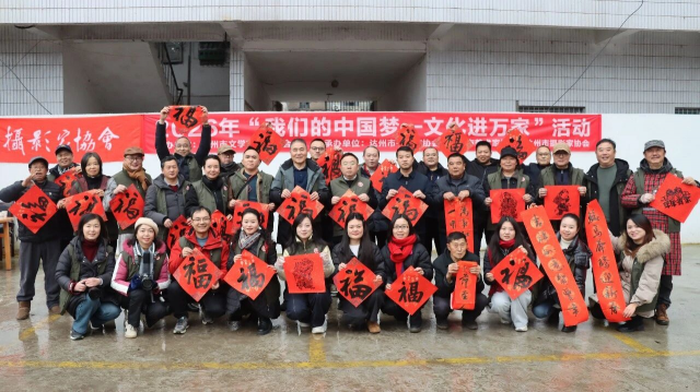 近日,由达州市文联主办,市书协、市美协、市摄协承办的“我们的中国梦 f 文化进万家”系列志愿公益活动正式启动。市文联党组书记、主席张宏带领三十余位艺术家,携手万源市文联,深入万源市罗文镇,为当地居民送去充满年味的文化服务和真挚的新春祝福。