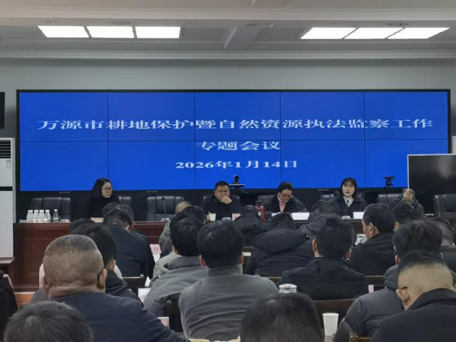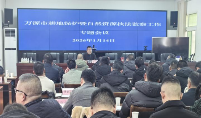 1月14日,万源市耕地保护暨自然资源执法监察工作专题会议在市自然资源局召开,市农业农村局,各乡镇(街道)分管领导,业务股室(自然资源所)负责人参会。