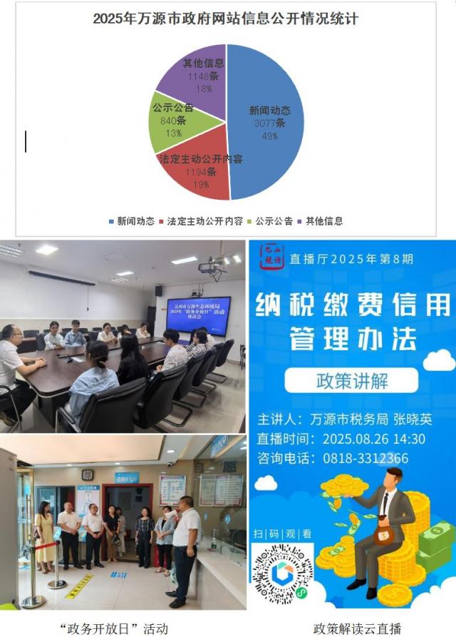 (一)主动公开。一是依托市政府门户网站,持续深化主动公开。2025年,市政府门户网站主动公开各类政府信息6259条,其中新闻动态类信息3077条,法定主动公开类信息1194条,公示公告类信息840条,预算决算、机关职能、招考录用等其他信息1148条;二是积极回应群众关切,解决群众急难愁盼,2025年市长信箱办理群众来件197件,办结率100%,公开答复19件,开展征集调查12期,受理承办12345政务服务便民热线(市长热线)诉求共计22050件,已办结22050件,按时办结率100%,较2024年增加3722件,增长20.31%,综合满意率满意率99.8%;三是强化政民互动,丰富信息公开形式。印发《关于开展2025年“政务开放日”活动的通知》统筹相关政府部门及乡镇(街道)开展“政务开放日”活动。定期举办“面对面”座谈会、政策宣讲会,LED屏定期滚动播放政策,全年开展各类政策宣传辅导18场,组织政策解读“云直播”9次。