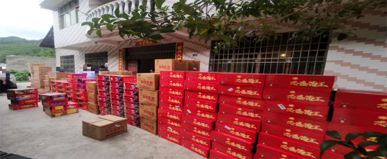 案件7:2025年1月23日,万源市应急管理局查处一起零售门店超量储存案件。该门店刘某某申请的《烟花爆竹经营(零售)许可证》载明限量储存为140件,但门店实际储存170件烟花爆竹产品,超量储存30件。万源市应急管理局根据《烟花爆竹经营许可实施办法》第三十五条第(二)项规定,对其作出立即消除安全隐患并处1500元的行政处罚。