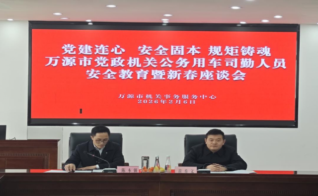 骏马踏春至,温情暖岁寒。2月6日,为共迎新春、畅叙未来,筑牢公务用车安全防线,市机关事务服务中心召开万源市党政机关公务用车司勤人员安全教育暨新春座谈会,全市70余名公务用车驾驶员及机关事务服务中心全体20余名干部职工参会。