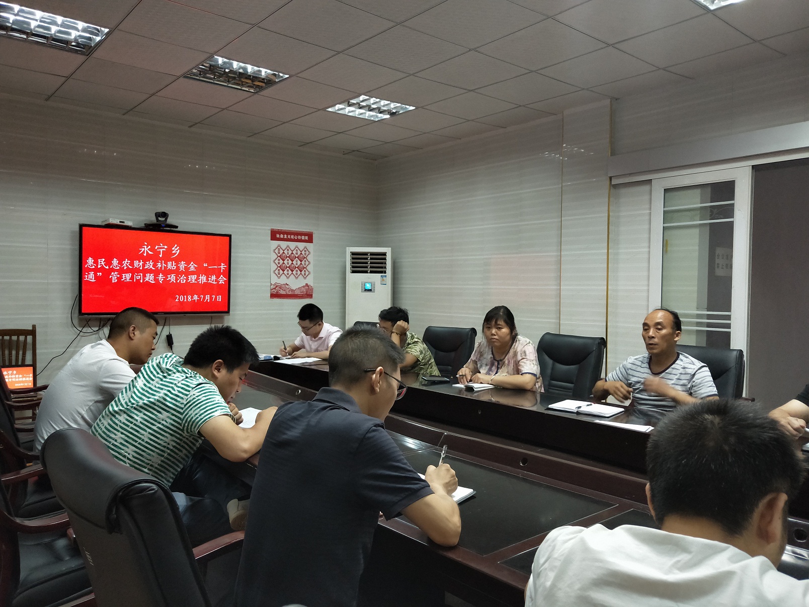7月7日上午,万源市永宁乡召开惠民惠农财政补贴资金“一卡通”管理问题专项治理工作推进会。全体乡干部参加会议,会议由党委书记王永超主持。