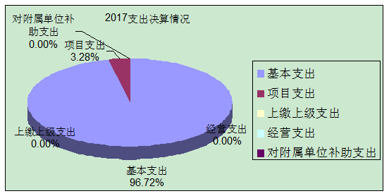 2017年一般公共预算财政拨款支出91.38万元,主要用于以下方面:一般公共服务支出82.71万元,占90.51;医疗卫生支出3.10万元,占3.39;住房保障支出5.57万元,占6.10