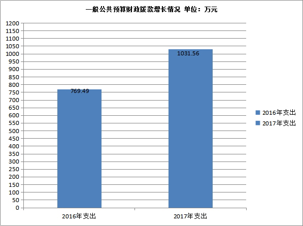 2017年度一般公共预算财政拨款支出1031.56万元,占本年支出合计的98.4%。与2016年相比,一般公共预算财政拨款增加262.07万元,增长34.06%。